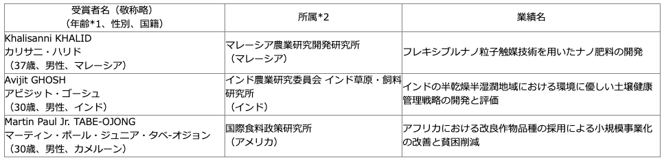 「Announcement of the laureates of the 2023(The 17th) Japan International Award for Young Agricultural Researchers (Japan Award) and the Award Ceremony to be held」