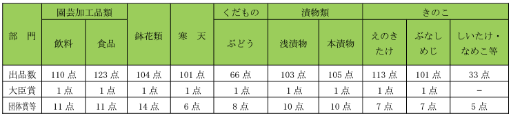 ※農林水産大臣賞受賞者の詳細は別紙をご覧下さい(しいたけ•なめこ等の部は農林水産大臣賞の交付対象外)。