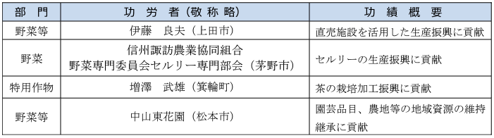 先駆的、先導的な活動により、本県の園芸特産業の発展に寄与された方々を表彰する。