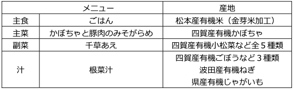 開催日時は12月5日(火)午後0時50分~午後1時30分、場所は松本市四賀学校給食センター、提供学校は松本市四賀小学校•松本市会田中学校で行われる。