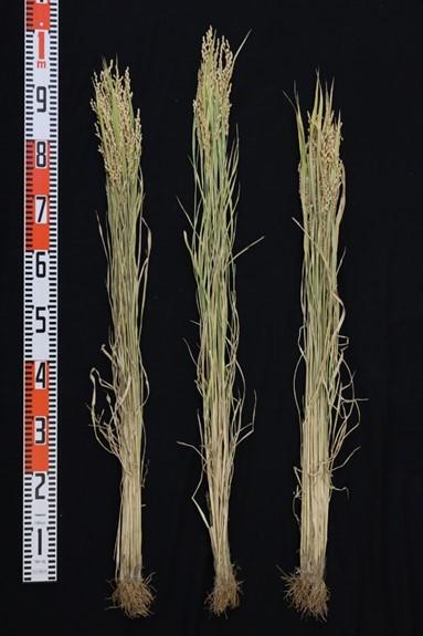 「ZR1」の株標本 左:ZR1、中:あきたこまち、右:ゆみあずさ(撮影:農研機構)