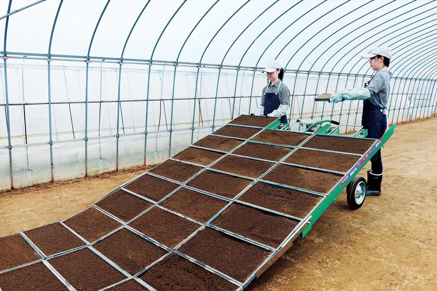 毎年、年明けから春にかけてご注文を多くいただいている人気商品だ。3月ごろには混みあうため、お待たせしてしまうこともでてきてしまう。今年の苗箱並べのシーズンに間に合うよう、是非お早目のご相談•ご注文をおすすめしている。