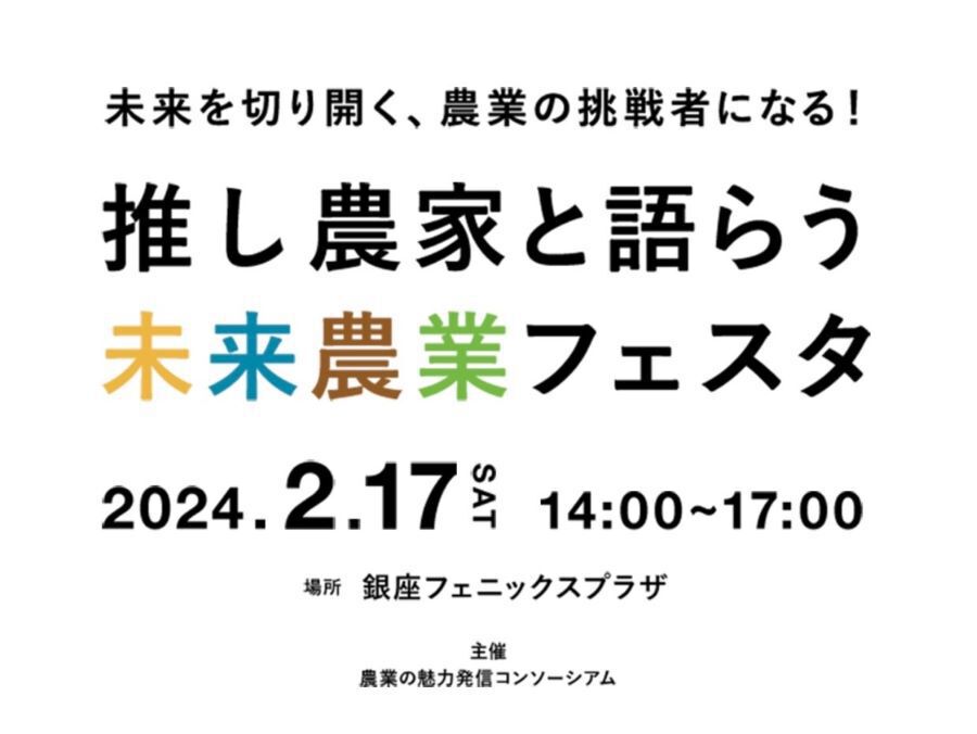 注目の若手農業者と次世代の農業を担う挑戦者との交流を図るイベント「推し農家と語らう 未来農業フェスタ」を 、2月17日(土)に銀座フェニックスプラザで開催する。是非、ご参加下さい。