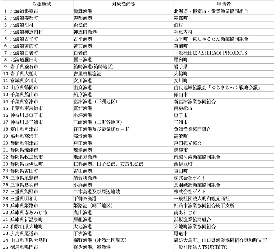 「海業の推進に取り組む地区」は以下のとおりだ。
