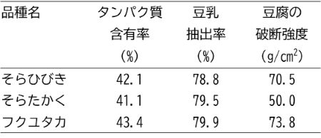 表3 「そらひびき」と「そらたかく」を原料とした豆腐の加工適性試験結果