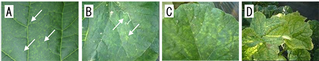 CCYVに感染すると、葉に退緑した小斑点を生じた後、葉全体が黄化し(図4)、果実重及び糖度が低下するため商品価値が著しく低下する。タバココナジラミは、体長約0.7mmの微小な害虫であるため、ウイルスを持った成虫がハウス内へ侵入するのを完全に制御することは困難だ。
