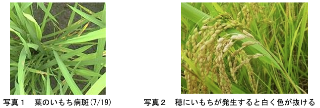 ・7月に入り、イネいもち病に感染しやすい気象条件の日が連続して確認されており、7月中旬以降、各地のほ場で発生がみられている。