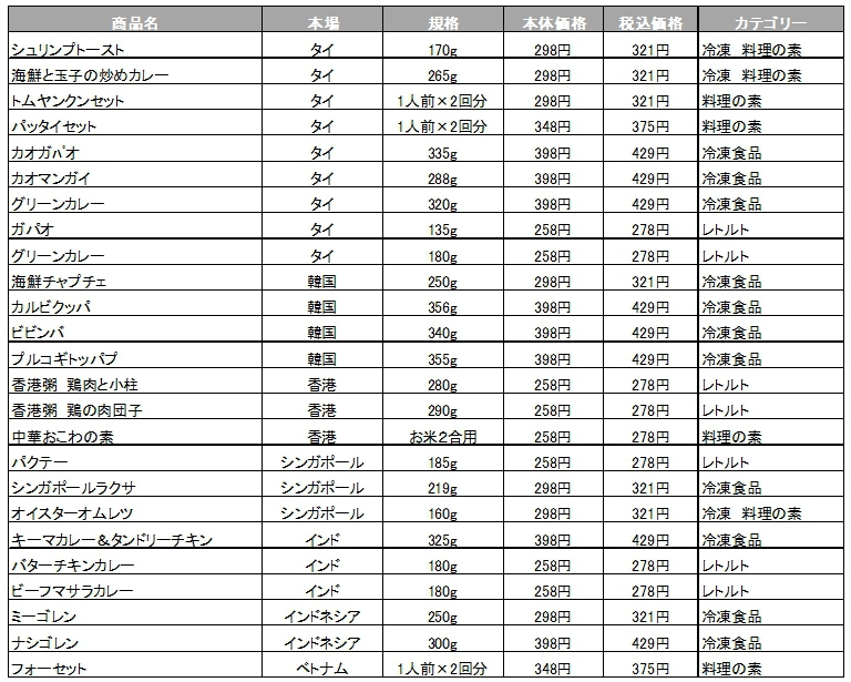 【「トップバリュ ワールドダイニング」第3弾アジアシリーズ 販売概要】