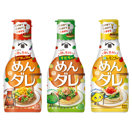 栄養バランスのよい“まぜめん”が手軽に楽しめる 「ヒゲタ めんダレ」シリーズ新発売(キッコーマン) 「コクうましょうゆ味」「すだち味」「塩レモン味」の3味種 |