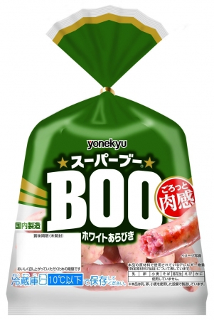 米久(株)は、3月に「スーパーブー(R)BOO ホワイトあらびき」を新発売する。ごろっとしたあらびき肉の食感と、肉のうま味が楽しめる、あらびきノンスモークウインナーだ。