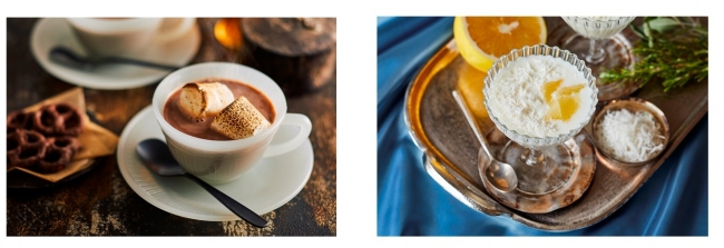 ココアとマシュマロを加えて 「グレホリビターココア」( 左上図)