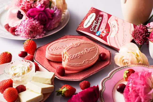 初のピンクウエハースを使用した春らしいクリスピーサンド 『3種ベリーのレアチーズ~ベリーとビーツのウエハースと~』 3月27日より期間限定新発売(ハーゲンダッツ ジャパン) |