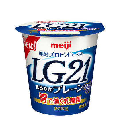 3月6日から「明治プロビオヨーグルトLG21」ブランドより、「明治プロビオヨーグルトLG21まろやかプレーン」を発売している。今までありそうでなかったプレーンタイプは、2000年の発売以来、お客さまから数多くご要望をいただいていた。しかしながら「LG21」ブランドとして満足のいく風味の実現、また、パーソナルタイプにおけるプレーンヨーグルトの市場受容性などの理由から、発売には至らず、検討と改良を続けてきた。