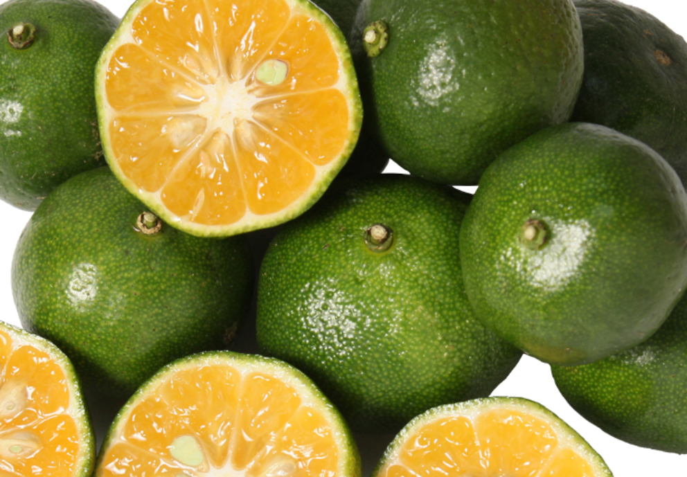 「ストレート果汁」でたっぷり8%使用!旨味を損なうことなく、爽やかな果汁が口いっぱいに広がる。シークヮーサー(和名ではヒラミレモンという)。