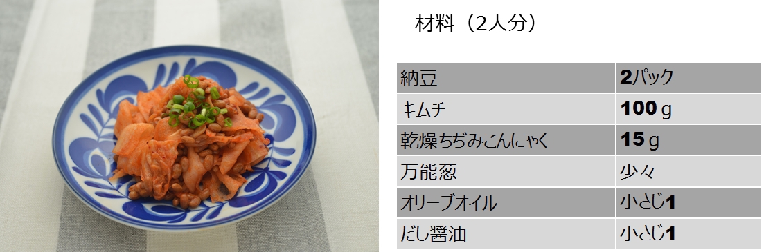 ・お肉などのかわりにちぢみこんにゃくと納豆を使用することで、脂質が減りヘルシーに!納豆からたんぱく質も補える。ダイエットや美容効果も期待できる。