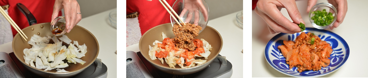 ③ひきわり納豆とソルトガムきびを合わせ、②を2/3合わせる。