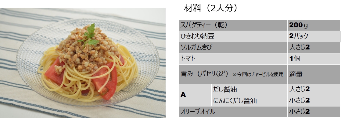 (3)ソルガムきび入り納豆トマトの冷製パスタ