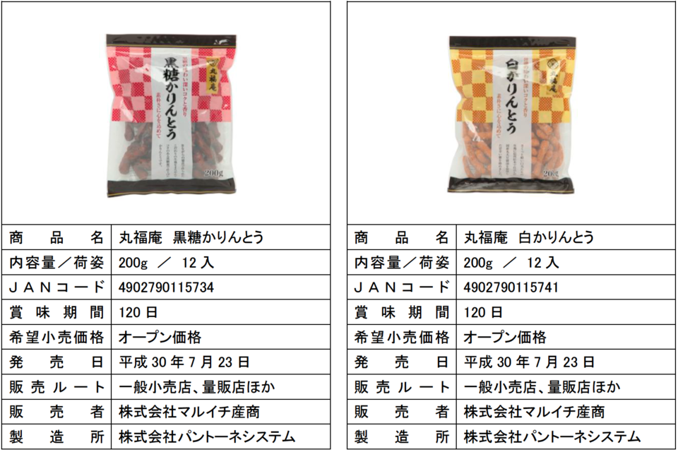 (株)マルイチ産商(本社長野市、平野敏樹代表取締役社長)は、伝統的な製法やこだわりの技法で昔ながらの味わいを訴求した焼き菓子のオリジナルブランド「丸福庵」を新たに立ち上げ、その 第一弾として「丸福庵 黒糖かりんとう」「丸福庵 白かりんとう」を7月23日(月)に新発売した。