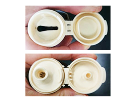 【写真上:リニューアル前のキャップ(プルリングを外した後)、写真下:リニューアル後のキャップ】