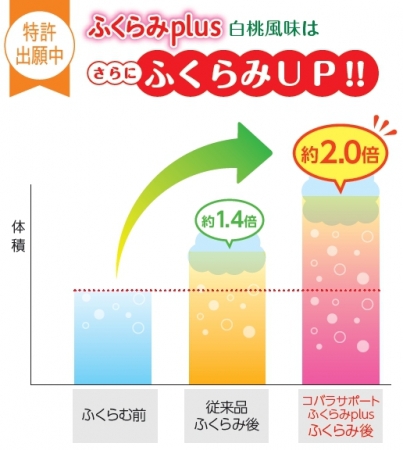「コバラサポートふくらみplus白桃風味」新登場 ふくらみがパワーアップ!カロリーゼロ、糖類ゼロ 全国のコンビニエンスストア・amazon.cp.jp等で |