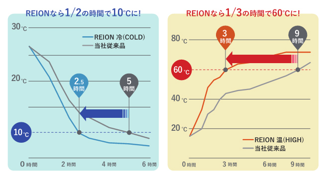 従来品と比較し約2倍以上の急速冷却、最⼤3倍の急速加温。低コスト化。