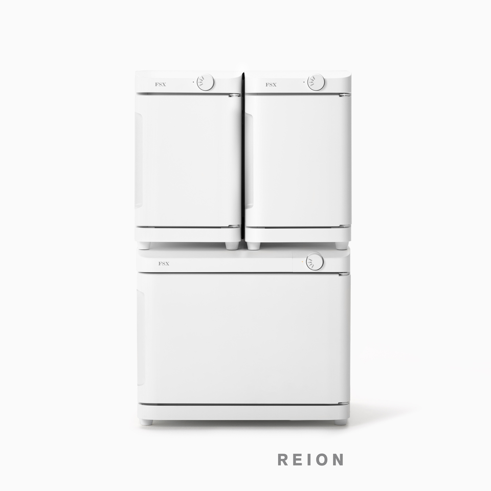 今後発売予定のSサイズと合わせ、モジュール式のサイズ展開を設計に取り込み、並べて使う、積み重ねて使う、複数台を使い分けるなど、⽤途やスペースに合わせて複数のREIONを縦横に組み合わせる事ができる。