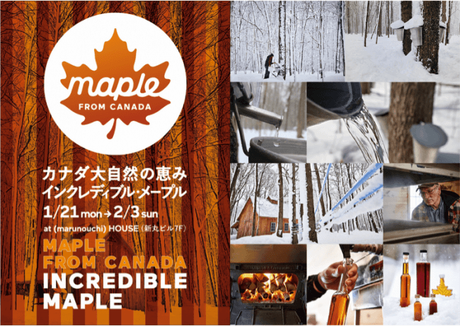 ケベック•メープル製品生産者協会は、1月21日(月)から2月3日(日)まで、新丸ビル7階の丸ビルハウスの協力を得て、同所にてメープルフェア「カナダ大自然の恵み、インクレディブル•メープル」を開催する。目的は神秘的な食材、カナダ産メープルシロップの真価を知っていただくことにあり、フェアは3つの要素で構成されている。