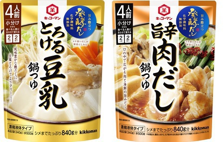 「キッコーマン食品(株)は、8月19日に「キッコーマン 発酵だし とろける豆乳鍋つゆ」「キッコーマン 発酵だし 旨辛肉だし鍋つゆ」を全国で新発売する。