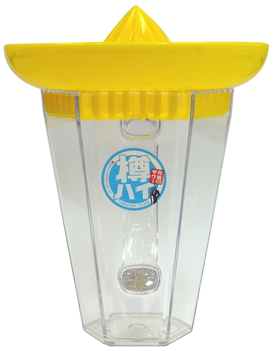 「樽ハイスクイーザージョッキ」は、オリジナルスクイーザーと専用ジョッキが一体になった販促品だ。オリジナルスクイーザーで果実を搾ると、搾りたての果汁がそのままジョッキに注がれる。お客様ご自身で果実を搾っていただくので、果汁量を調節でき、自分好みのサワーに仕上げる体験をお楽しみいただける。また、飲食店の従業員がサワーを提供する際に果実を搾る作業が省略できるため、提供スピードの向上や作業の効率化への貢献も期待できる。