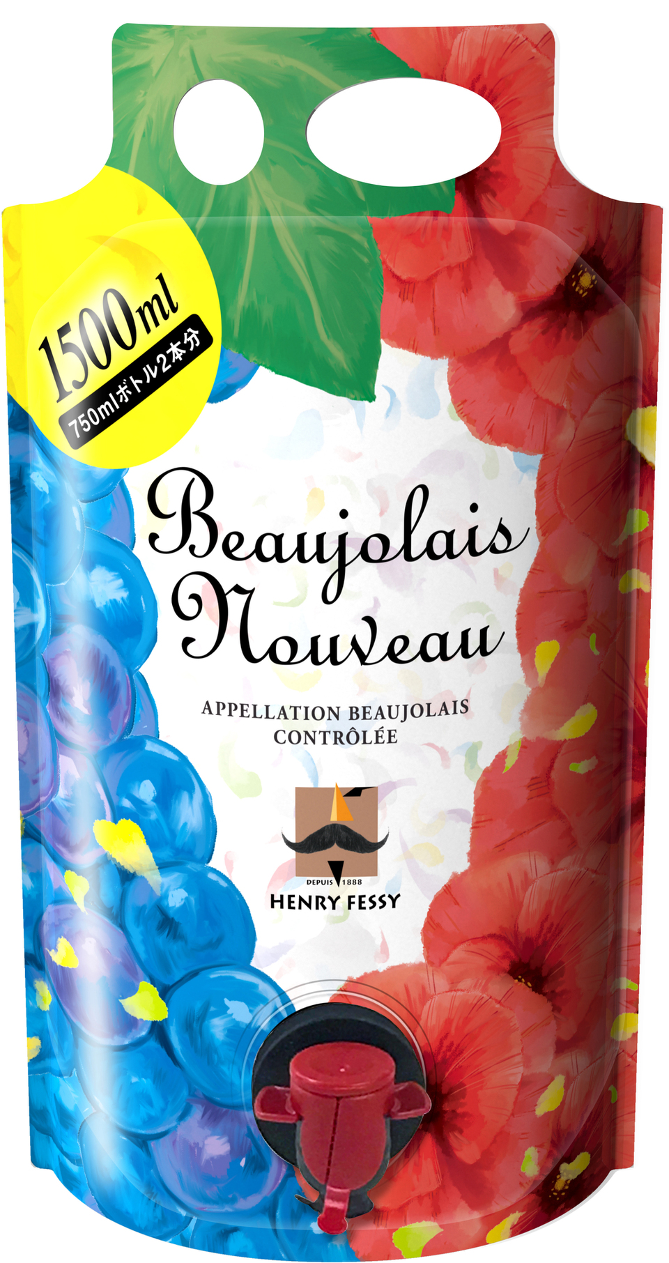 大人数でのパーティなどにピッタリな1,500ml入りの大容量タイプを発売する。大容量ながらびんに比べて軽く扱いやすいパウチパック入りで、割れることがないため宴会プラン等で、テーブルにパウチパックのまま提供可能だ。“お客様ご自身で注ぐ”という新しい楽しさ提供するとともに従業員の作業負荷軽減につながる。また、密閉容器で光を通さないため開封後も酸化による味の劣化を軽減することができる。中味はスタンダードタイプの「ボージョレ・ヌーヴォ」だ。