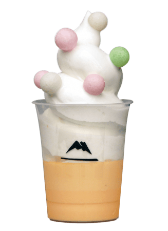 低温殺菌の安曇野産牛乳を使った新鮮で濃厚なソフトクリームはふわっとした口当たりと牛乳感が別格な味わい。コクが自慢のなめらか信州プリンと一緒に味わえる贅沢な新名物だ。さぬきの名産、幸せのお菓子「おいり」をちりばめ、見た目もキュートなスイーツを「是非お召し上がって欲しい」という。