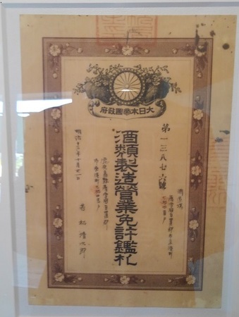 (酒類製造営業免許鑑札)