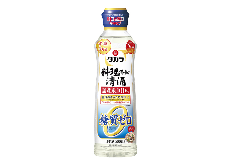 調節自在でムダなく注げる料理清酒“細口&広口キャップ”採用 タカラ「料理のための清酒」(糖質ゼロ)500mlらくらく調節ボトル 8月27日に新発売(宝酒造) |