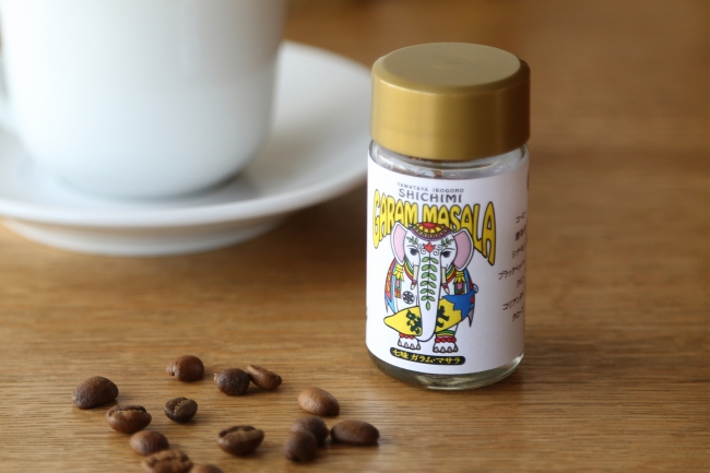 この「コーヒーガラムマサラ」は、丸山珈琲代表の丸山健太郎が八幡屋礒五郎を訪れ、スパイスの調合を試したことがきっかけで生まれた商品。八幡屋礒五郎と丸山珈琲でさまざまなスパイスとコーヒーの組み合わせを試行錯誤し、当初はコーヒーに入れるスパイスで試作を繰り返したが最終的にスパイスの原料自体にコーヒーを入れた商品が生まれた。八幡屋礒五郎の七味ガラムマサラをベースにし、インドのコーヒーが原料として入っている、辛さを楽しめるスパイスだ。「様々な料理やドリンクなどにかけてお楽しみください」という。