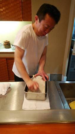 今回のおろし金は目立てを6.5mm間隔とし、オリジナル鏨(たがね)にて微妙な角度、打ち込みの強弱の違いをつけることで、大根であれば淡雪のように天つゆに溶け、天麩羅をまとうようにふわっとなり食材を引き立たせる逸品へと変化する。