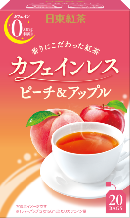 フルーツの中で人気のピーチとアップルの甘くフルーティーな香り。カフェインが気になる時やおやすみ前のリラックスタイムに最適だ。フルーティーな香りとやさしい味わいはお子様にもおすすめ。紅茶本来の風味をできるかぎり保ちながらカフェインを取り除いている。