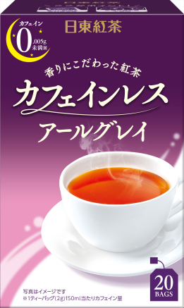 人気のフレーバーティー、アールグレイ。カフェインレスのやさしい味わいと香り立ちをイメージしてパッケージデザインをリニューアル。ベルガモットの華やかな香りと、やわらかな紅茶の味わいをカフェインレスでお楽しみいただける。紅茶本来の風味をできるかぎり保ちながらカフェインを取り除いている。