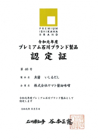 プレミアム 石川ブランド認定証(魚醤 いしるだし)