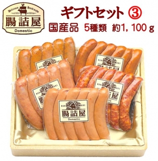 国産原料の手作りハムソーセージの腸詰屋の人気のソーセージ詰め合わせセット。定番の腸詰5種類をセットにした。