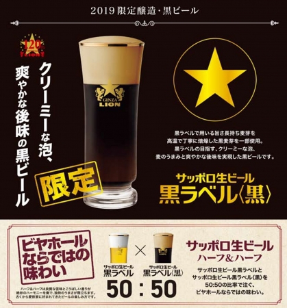サッポロホールディングス(株)のグループ企業である「JOY OF LIVING-生きている喜びの提供-」を企業理念に、ビヤホール・レストランなどを運営している(株)サッポロライオン(本社東京都渋谷区、三宅祐一郎社長)は、全国のビヤホールライオン•銀座ライオン(一部店舗除く)にて2019限定醸造ビール「サッポロ生ビール黒ラベル<黒>樽生」を11月5日(火)より数量限定で販売する。