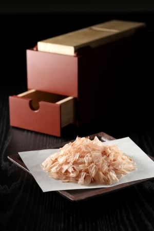 現在では、成人病の予防やストレス解消、ダイエットにも有効といわれている“自然食品の王様”として、改めて注目を集めている。約半年をかけて4番カビ付けまでした上質な本枯節を伝統の技で0.04㎜まで薄く削り、真似のできない味わいに仕上げている。
