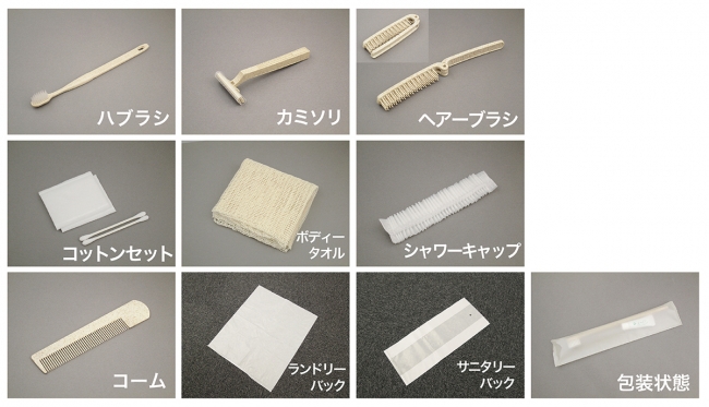 ダイトのエコ商品シリーズはハブラシ、カミソリ等のメインアイテムからシャワーキャップ、ボディタオルといったアイテムまで揃えており、客室をすべてエコ商品で揃えることが出来る。