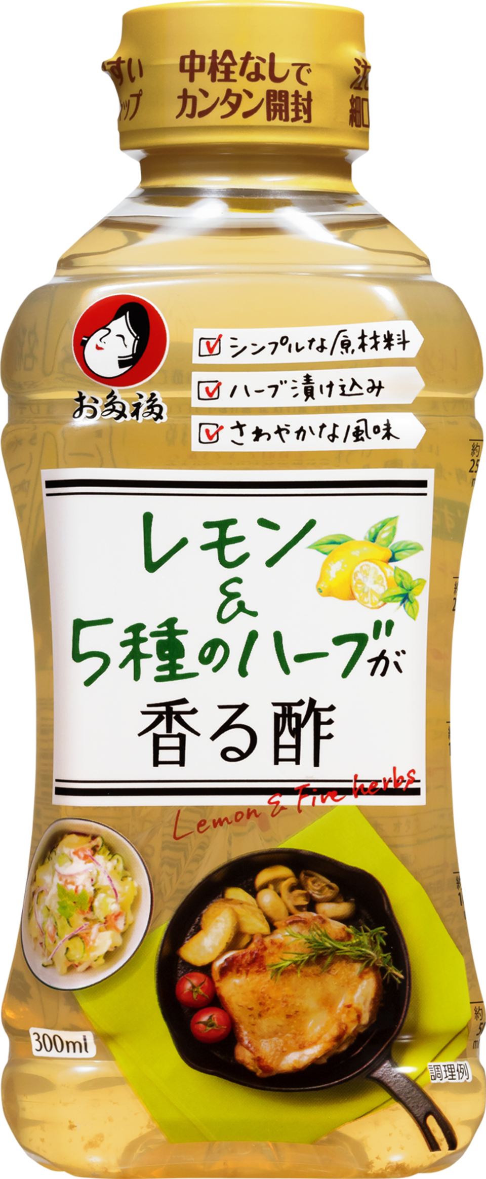 「ガーリック&オニオン香る酢」は、ガーリックとローストオニオンが食欲をそそる香りでコクのある味わい。「レモン&5種のハーブ香る酢」は、セージ・タイム・フェンネル・ローズマリー・バジルの5種のハーブをブレンド。心地良いマイルドな香りとレモンの爽やかな味わいが特徴だ。どちらもいつもの料理をヘルシーにワンランクアップさせてくれる。
