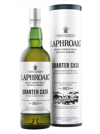 バーボン樽で熟成した原酒を、クオーターカスク※に入れ替えてさらに熟成した。ラフロイグならではの、爽快なスモーキーさとほのかな甘い余韻に加え、クオーターカスクを用いることで生まれる樽由来の香りと力強い味わいが特長だ。