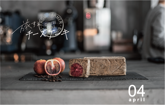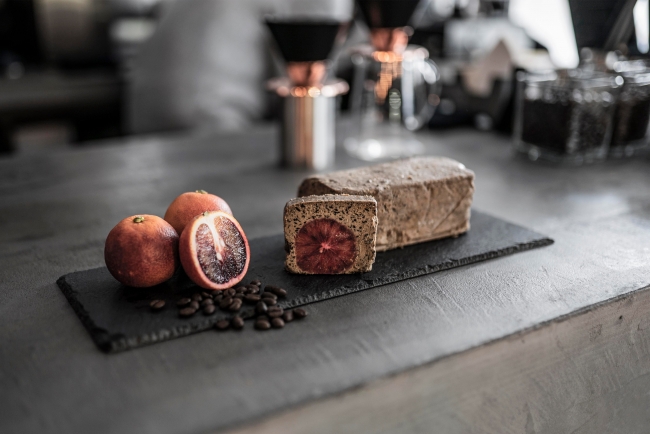 4月14日がオレンジデーということで、愛媛県産のブラッドオレンジと、奥渋でショップ展開をするBeasty Coffee by amadanaのコーヒー豆を使った、大人なチーズケーキだ。ブラッドオレンジは、果汁が豊富で深みのある品種の”モロ"をふんだんに使い、チーズの香りをグッと引き立て味に深みを出すビターなコーヒー豆をアクセントに加えた。