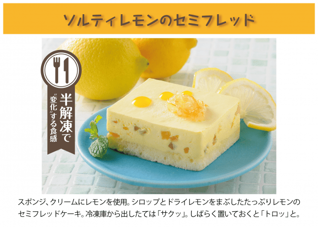 アイスでもなく、チルドでもない、新感覚フローズンデザート!半解凍で味わえるセミフレッドケーキ、レンジ調理で風味深まる本格スイーツだ。冷凍保存なので、長期ストックが可能である。