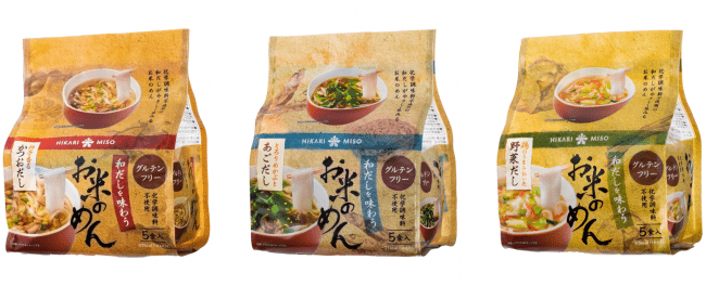 ひかり味噌󠄀(株)(長野県諏訪郡下諏訪町、社長林善博代表取締役社長)は、スープ麺の新ブランドとして「和だしを味わうお米のめん」を立ち上げ、『和だしを味わうお米のめん 柚子香るかつおだし5食』『和だしを味わうお米のめん とろりめかぶとあごだし5食』『和だしを味わうお米のめん 鶏のうまみ効いた野菜だし5食』の3品を9月1日(火)から全国のスーパーマーケットなどで発売する。