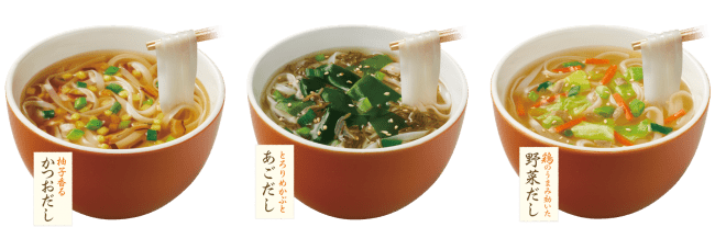 「和だしを味わうお米のめん」シリーズとして、3種類の味を発売する。かつお節、椎茸の効いた味わい深いだしに柚子が香る『和だしを味わうお米のめん 柚子香るかつおだし5食』、磯の香りが楽しめるあごだしに、めかぶとわかめが入った『和だしを味わうお米のめん とろりめかぶとあごだし5食』、キャベツの甘みに鶏のうまみとごぼうの香りが効いた野菜だしの『和だしを味わうお米のめん 鶏のうまみ効いた野菜だし5食』の3品だ。