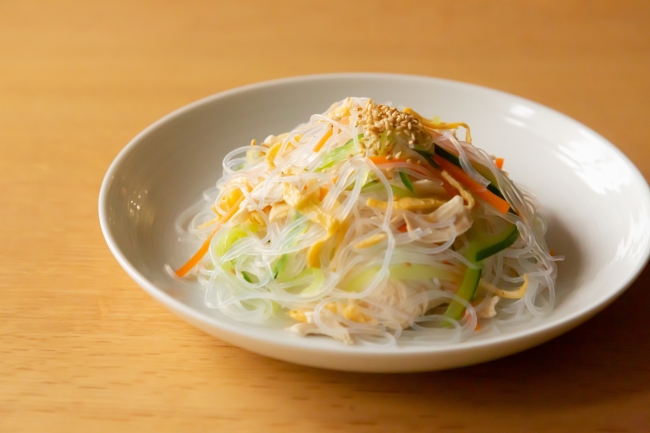 [はるさめサラダ] 透明で光輝度が高いため、さわやかなイメージのサラダに仕上がる。