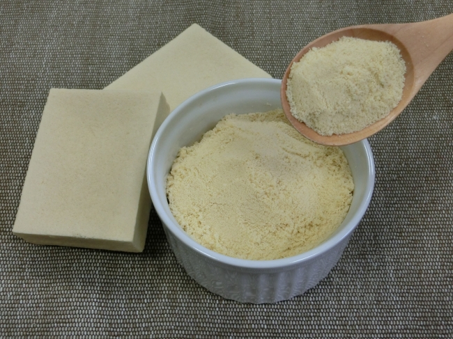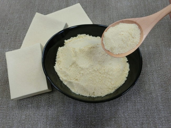 “大豆ベータコングリシニン”は熱や発酵等の影響により減少する成分ですが、同社のこうや豆腐は“ゆるやかな製法(たんぱく質抽出•乾燥)”により、安定的に含有したこうや豆腐を提供している。小麦粉の一部を置き換えたお菓子や、肉の一部を置き換えたハンバーグなどにご利用頂くことで手軽に美味しく、機能性表示食品を食生活に取り入れることができる。
